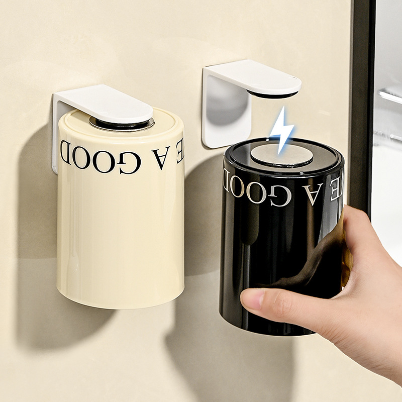 マグネット式うがい用のコップを逆さまにかけて歯を磨くコップカップルの歯ブラシのコップのクリーム風の歯ブラシの棚のうがいのコップを逆さまにして壁掛けに置きます。