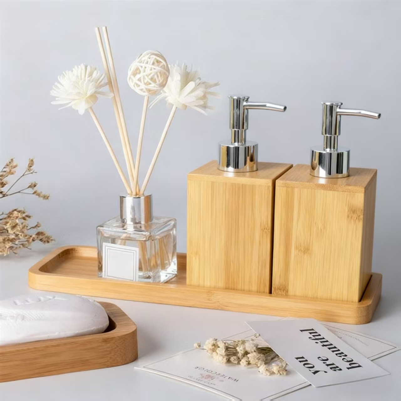 竹製ホテル家庭用レストラン浴室ローション缶手洗いボトル入浴剤シャンプー容器缶卸売り可能