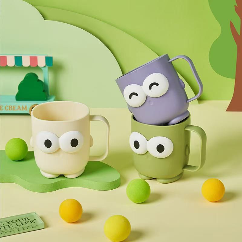 子供用ハンドル付きマウスウォッシュカップ、男の子用、女の子用、カップル用歯磨きカップ、厚みのあるクリエイティブな洗面カップ、大きな目