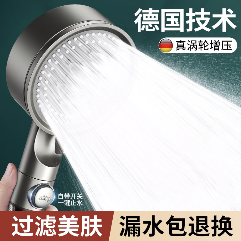 ドイツ製のスーパーチャージャーシャワーヘッドには、ワンクリック止水機能が内蔵されており、家庭用給湯器の入浴用大型水圧シャワーヘッドです。