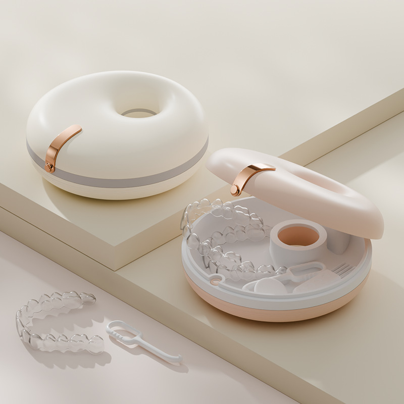 トラベルドーナツ型シリコン製矯正器具ケース、マグネット式デザインで片手で簡単に開閉、ミニで持ち運びやすく、スペースを取らない
