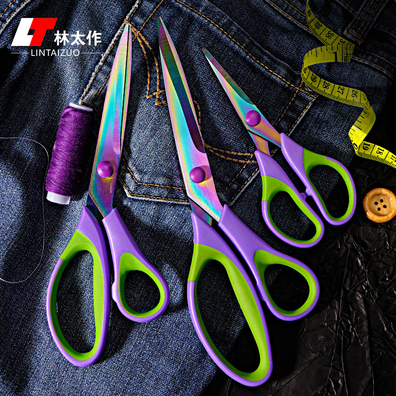 国境を越えて起爆した三点セットのカラーチタンハサミステンレス製オフィス文房具カット家庭用裁縫カット手作りカット
