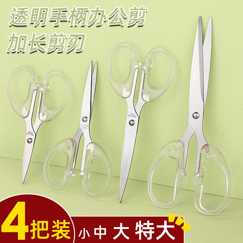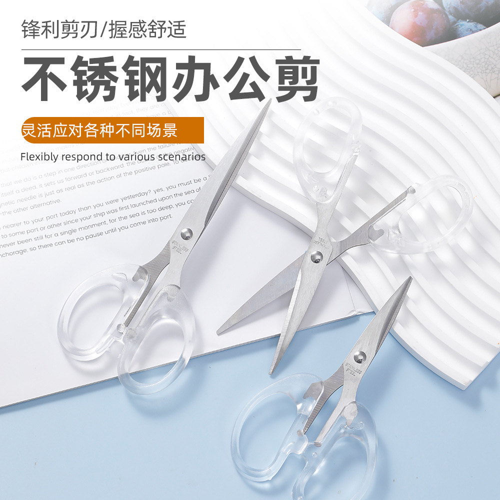 シンプルで透明なステンレス製ハサミ 家庭用・オフィス用多機能ハサミ 学生用工作用文房具ハサミ 在庫あり