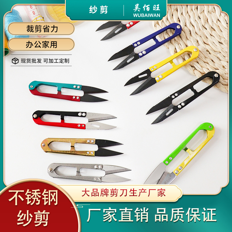 U型の鉄の芸の紗はメーカーを切って家庭の服を卸売りして裁縫して十字の刺繍の糸の頭を切ってカラーのミニのはさみを切ります。