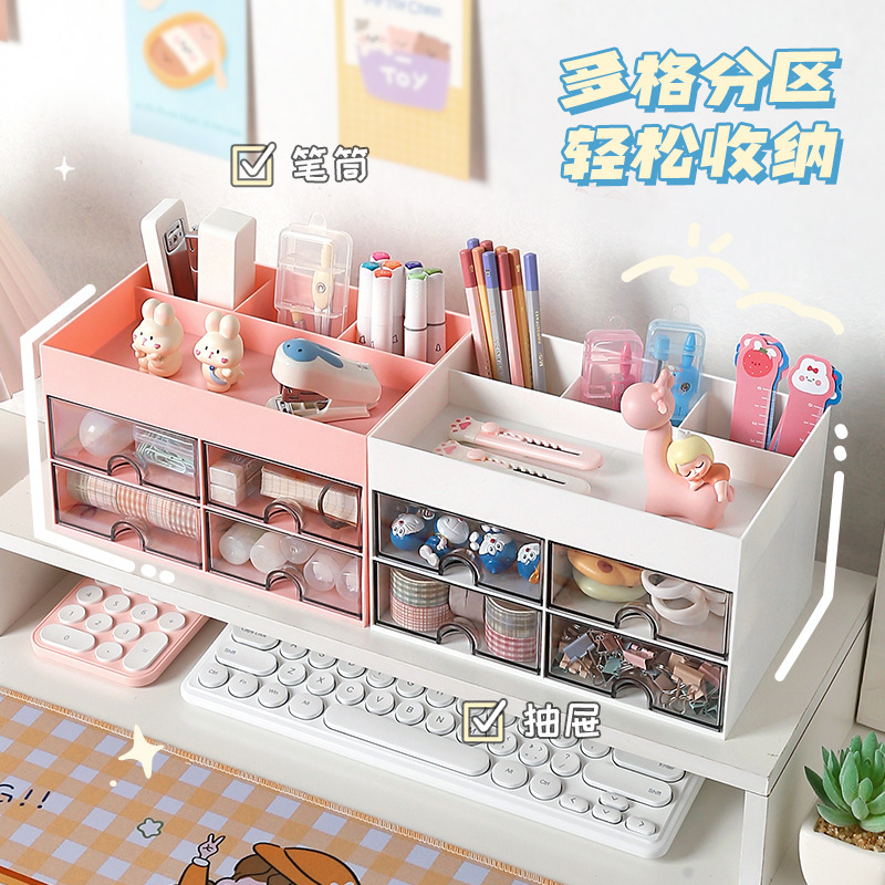 かわいいアクセサリー収納ケースジュエリー頭飾りデスクトップ文房具化粧品ケース女子学生引き出し式机整理
