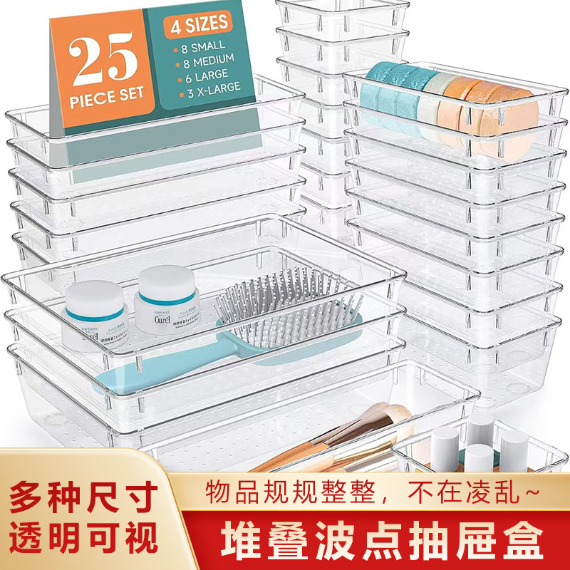 国境を越えた電気商PETプラスチック引き出し収納ケース25pcs収納ケースセット浴室化粧品整理ケース