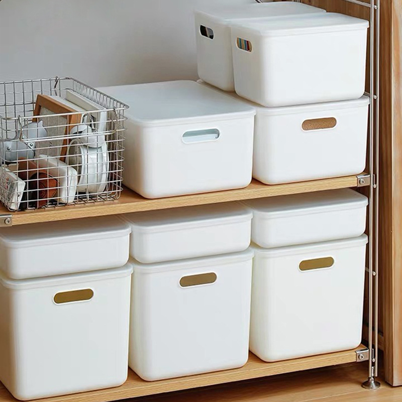雑貨収納ケースクリーム風プラスチック蓋付き整理ケースデスクトップ収納収納ケース家庭用玩具収納ケース