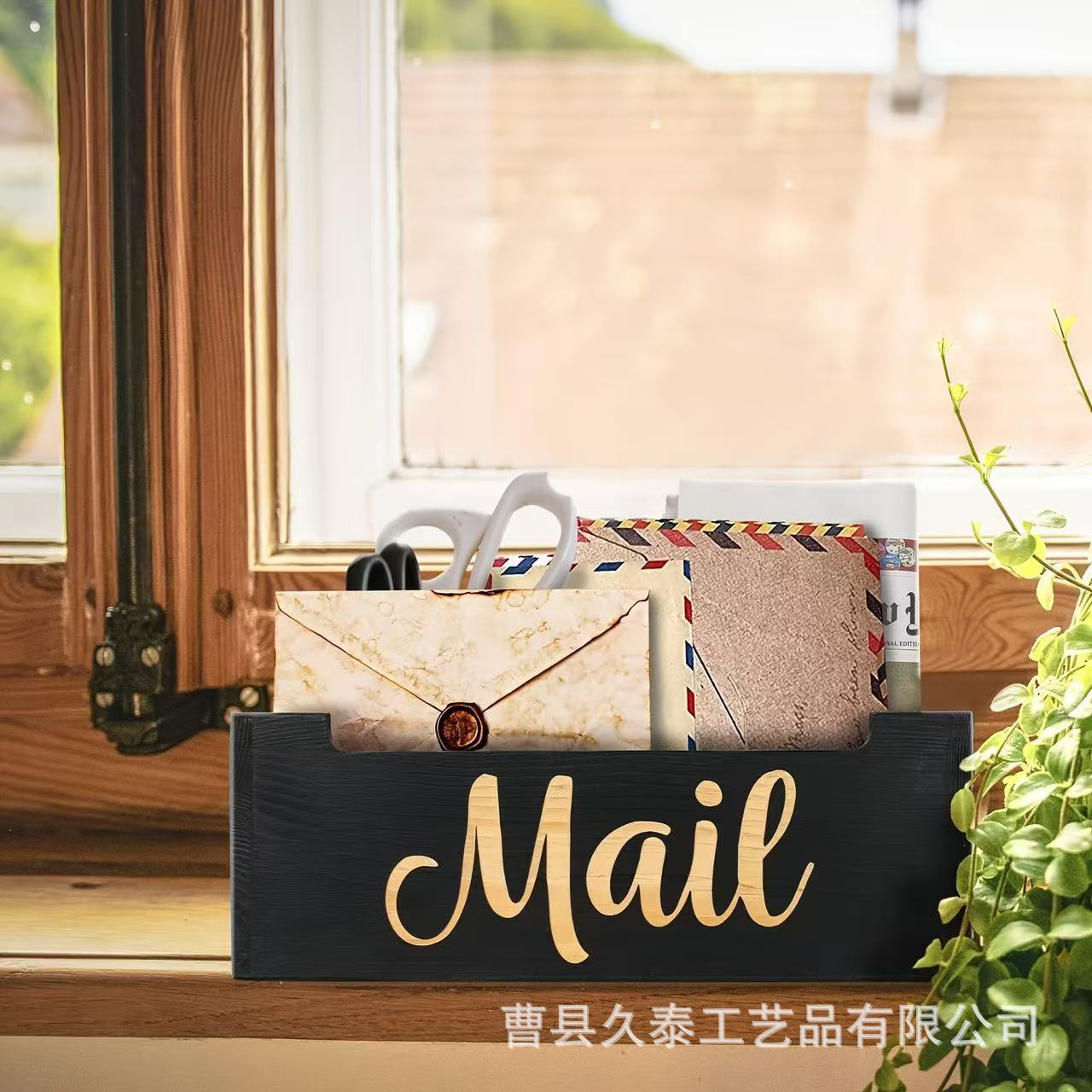 松木メール収納ボックスデスクトップ収納透かし彫り木製ボックス木製壁掛けメールボックスクリエイティブ収納ボックス