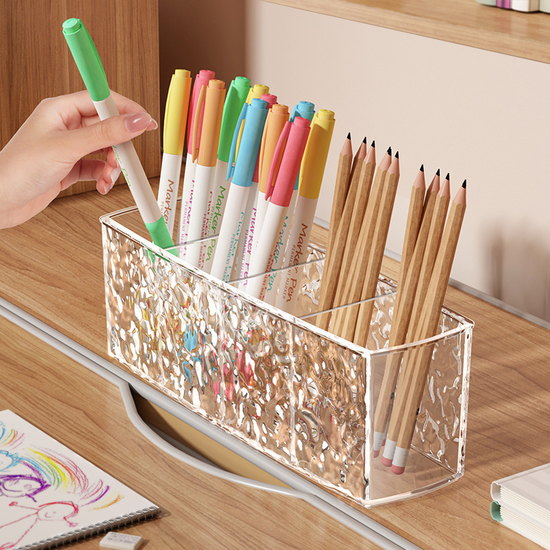 家庭用寮透明アクリル子供男の子女の子文房具水彩画ペン分格収納学生デスクトップ筆立て