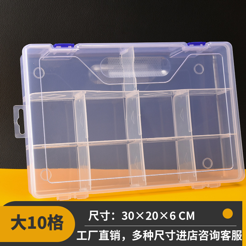 10コンパートメントの取り外し可能な透明プラスチック収納ボックス、ジュエリー、文房具、釣り具、ネジ、ハードウェアツール、カード、ビルディングブロックボックス、ポータブル