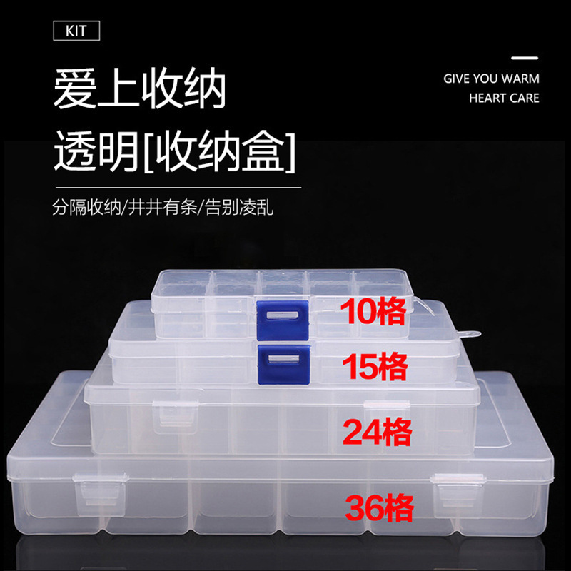 分格プラスチックデスクトップ収納ケース10 15 24格透明ボタン漁具アクセサリー化粧品包装箱