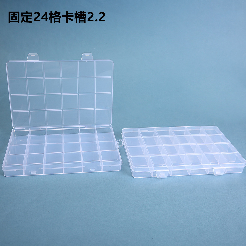 固定24格溝付き透明プラスチックケースビーズ金物工具アクセサリー漁具アクセサリー文房具ボタン収納ケース