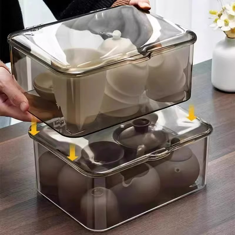 茶器収納ケース透明杯防塵入れ工夫カップ戸棚にティーポットを入れるとコップ棚を重ねることができる