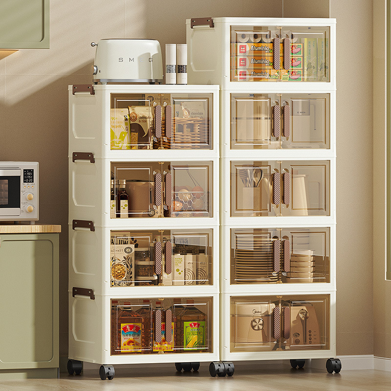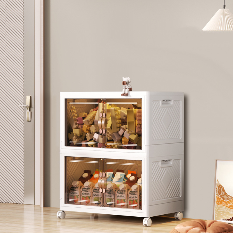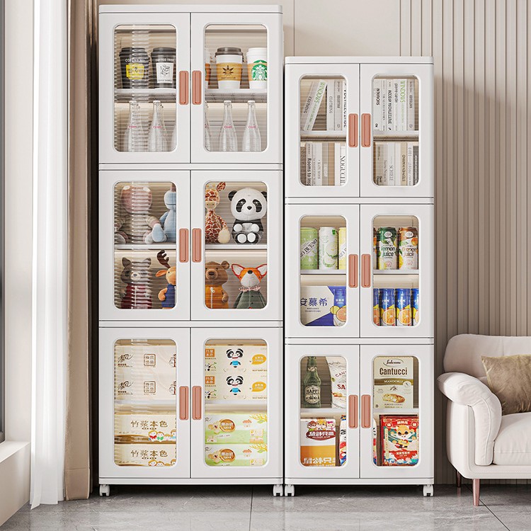 折り畳み収納キャビネットプラスチック子供服キャビネット多層スナック玩具収納家庭用ドア付き収納キャビネット