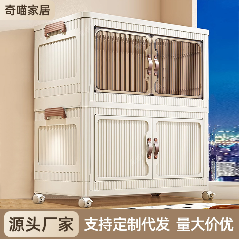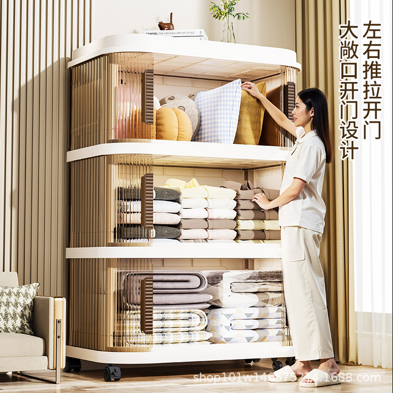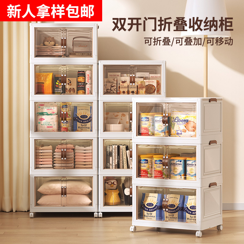 家庭用折り畳み式収納キャビネット多機能収納ボックス透明ロッカー多層ダブルドア収納キャビネット