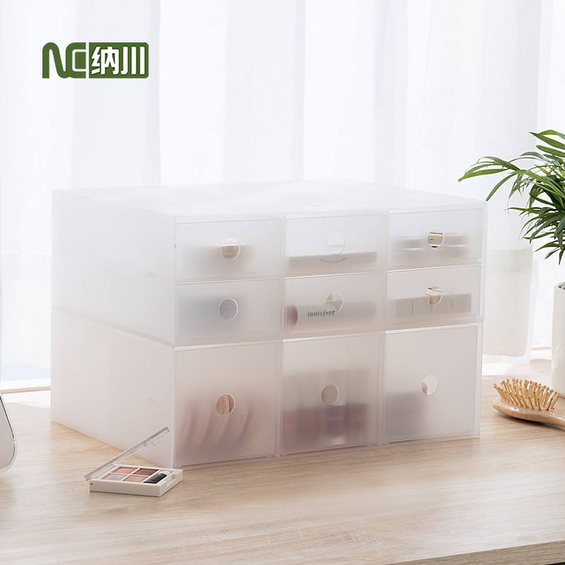 納川家庭用品自由組み合わせ収納キャビネット透明つや消し引き出し式化粧品雑物デスクトップ収納ケース