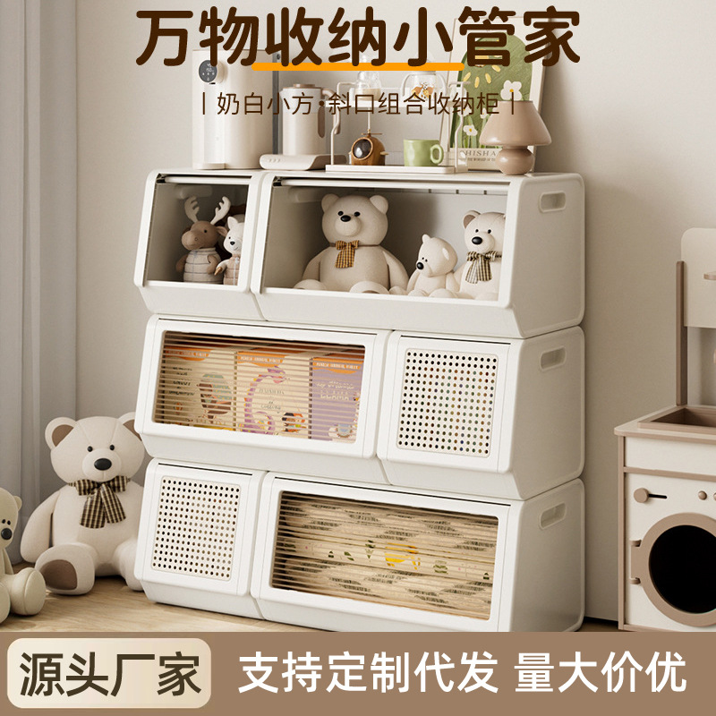 家庭用収納キャビネット大容量のおもちゃや衣類の収納ロッカーリビングルーム寝室斜め口肥厚プラスチック収納ボックス