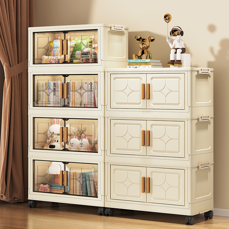 間食収納棚家庭用多層無取付ロッカー子移動プラスチック子供服折り畳み収納棚