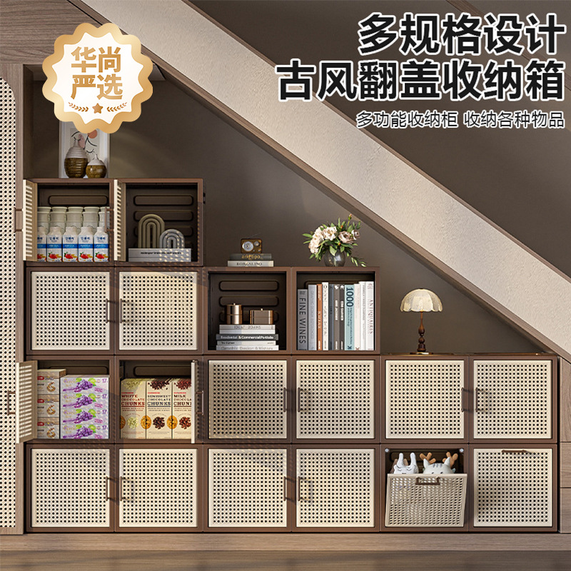 [厳選] 中世スタイルの収納キャビネット折りたたみ収納キャビネット寝室のベッドサイドテーブルスナックおもちゃプラスチック収納ボックス