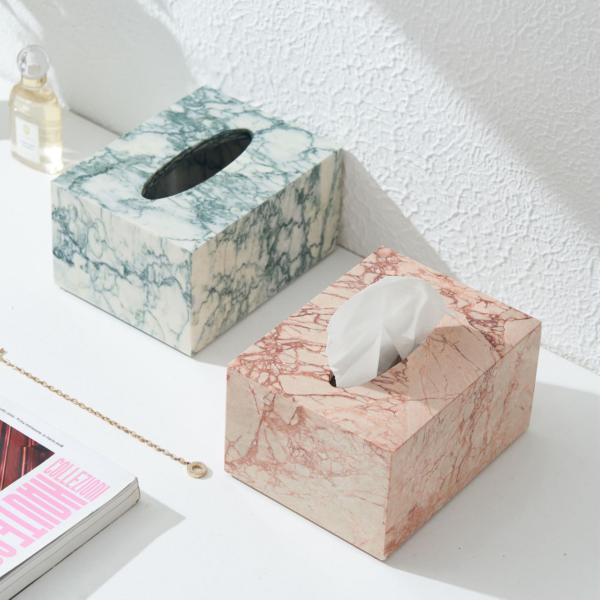 メーカーの天然大理石の豪華な石のティッシュの箱の客間は紙の収納箱の高級な軽豪華な置物のホテルの高級な服装を引き出します。