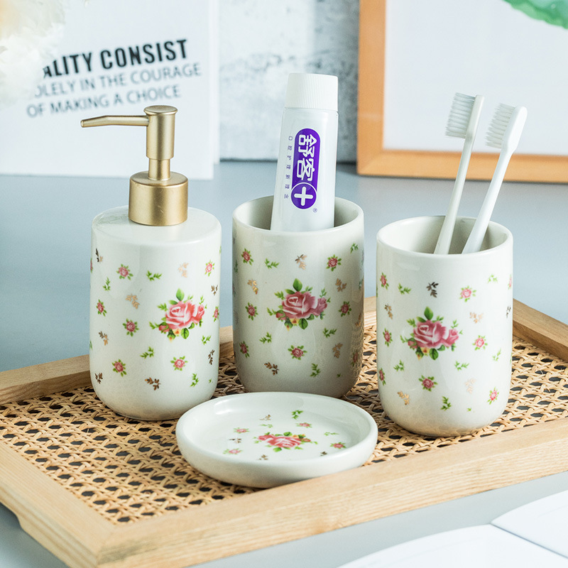 ヴィッチセラミック タンポポ洗面台5点セット ヨーロピアンスタイル歯ブラシセット バスルームセット マウスウォッシュカップ 浴室用