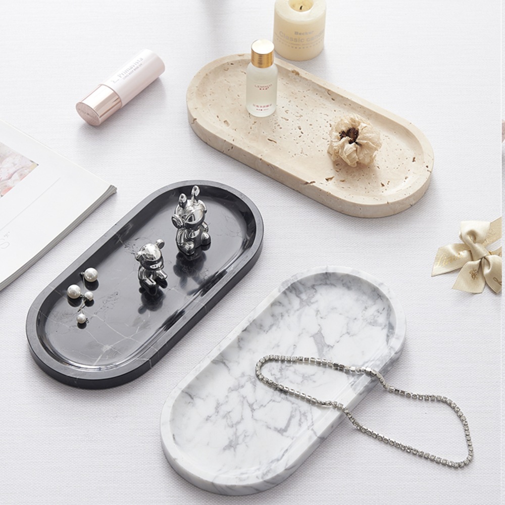 クロスボーダー天然軽量高級大理石トレイバスアメニティ化粧品収納バスルームシンクトレイ