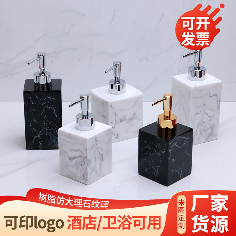 大理石模様のハンドソープボトル、シャンプー、シャワージェル、樹脂製詰め替えボトル、ロゴ印刷、洗面台