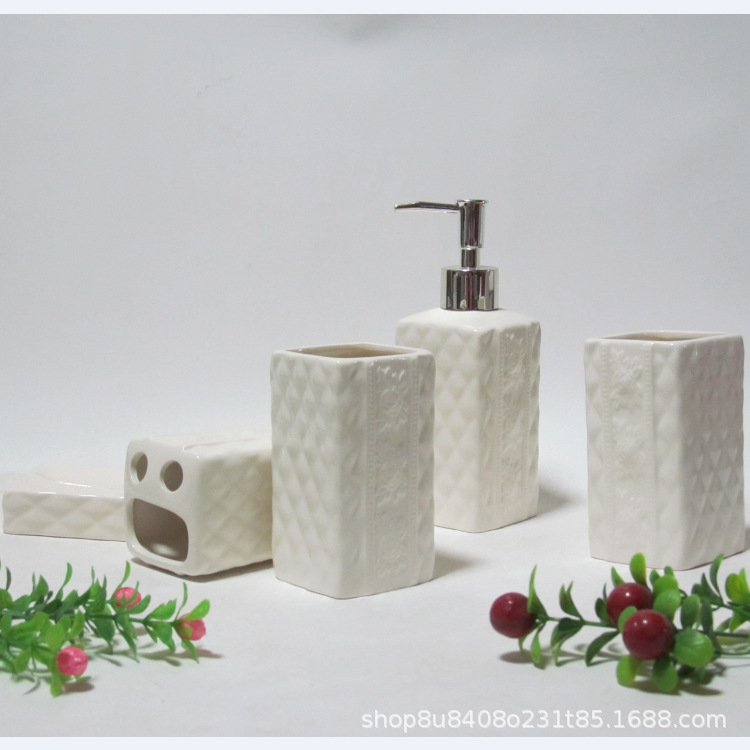 YSTセラミック製バスルーム洗面用具セット、ローションボトル、カップ、ソープディッシュ、トイレ4点セット、越境卸売