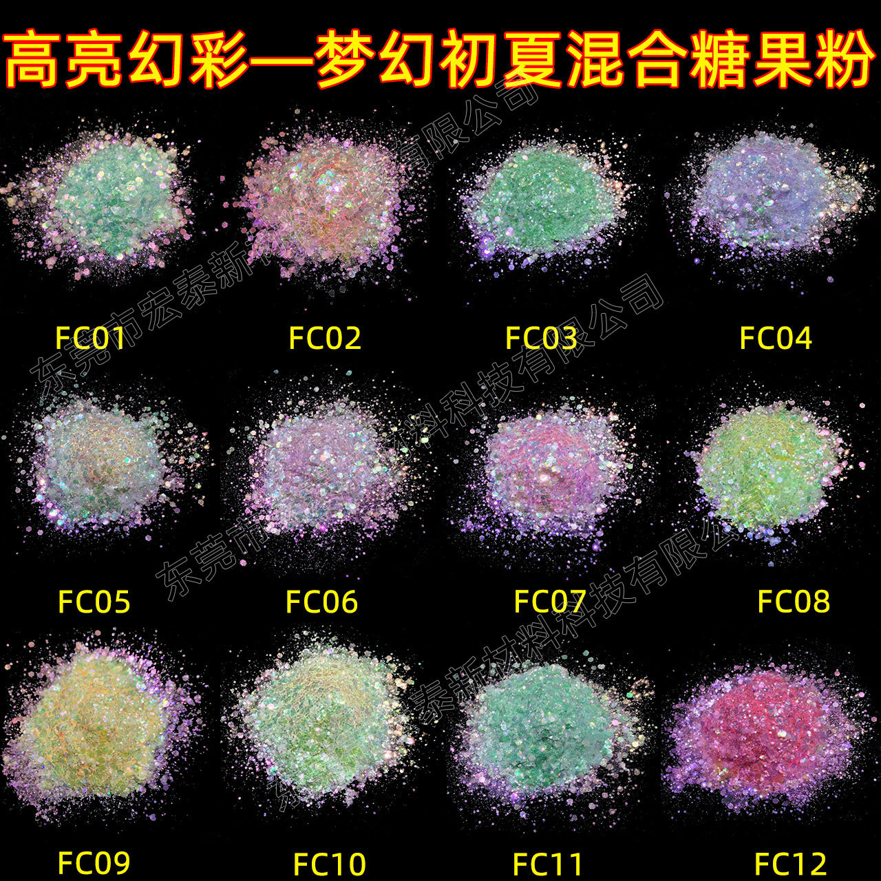 卸売りハイライトの幻の色の薄い色のシリーズの大きさの混合のスパンコールの工芸品のグラデーションの夢幻の混合のキャンデーの粉のレーザーの粉