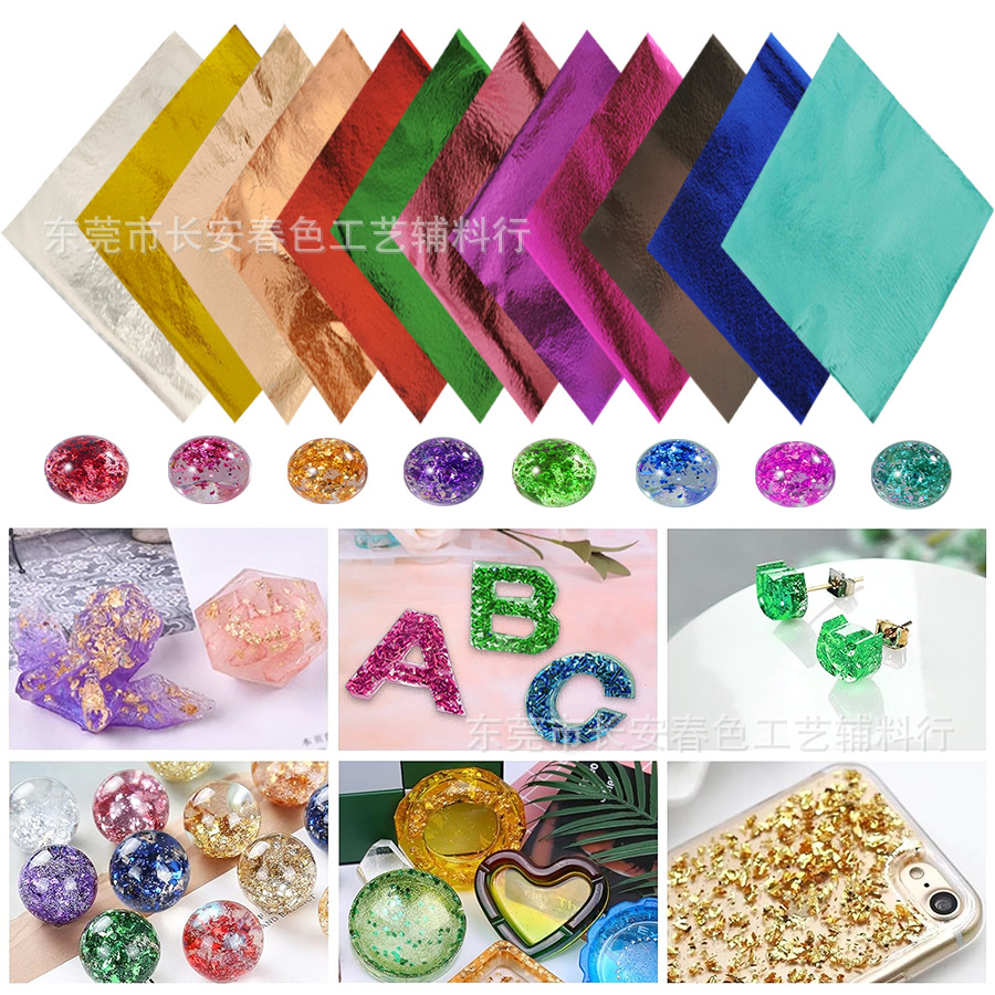 120 枚の 12 色の台湾模造金箔 10 枚/色の鮮やかな色の工芸品 DIY 樹脂を供給します。
