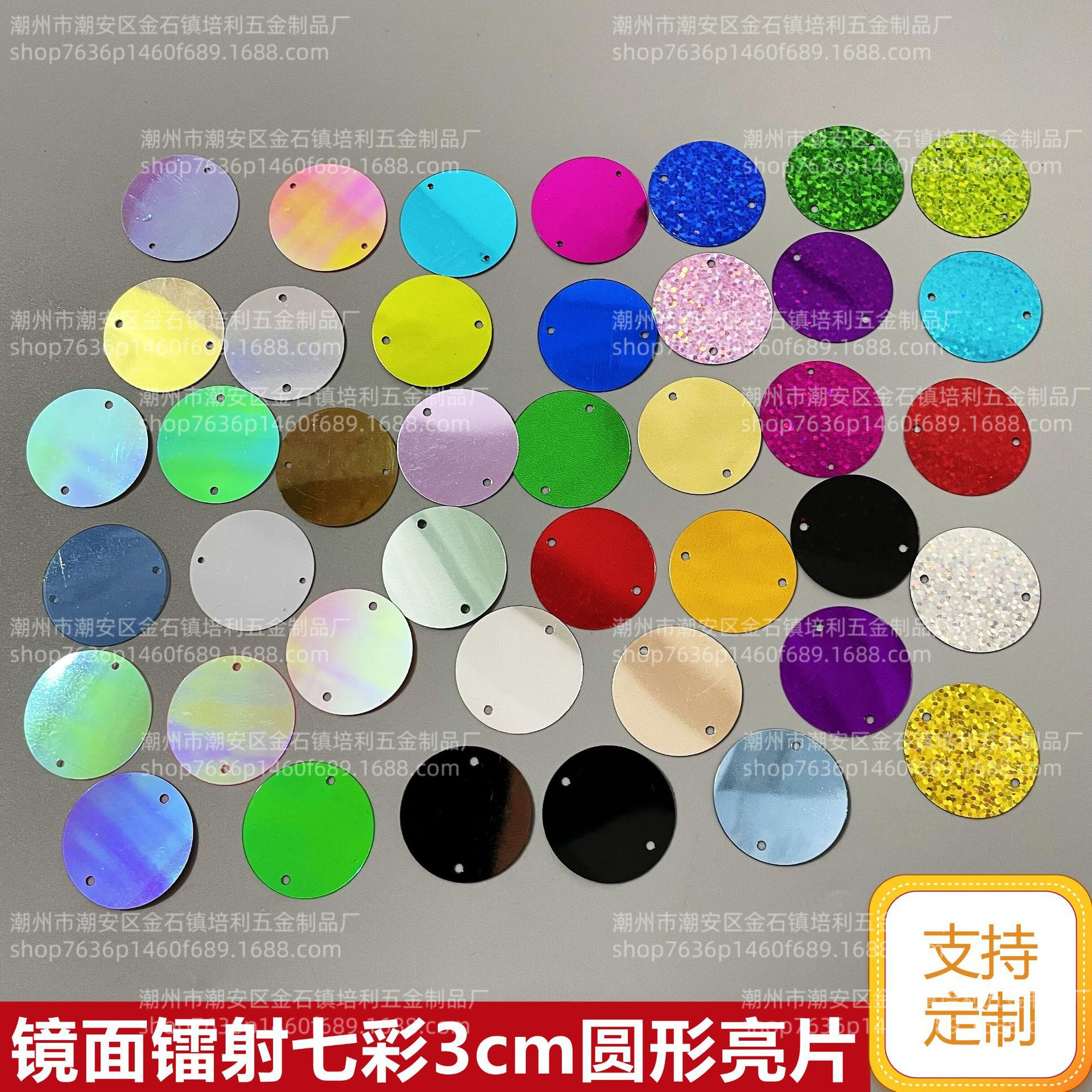 金銀紅カラー鏡面レーザー幻彩七彩diy魚鱗円形スパンコール3cm円形両穴pvcスパンコール
