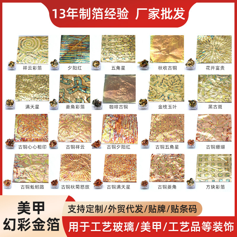 クロスボーダー14cmカラーネイルアート錫箔紙卸売りDIYネイルアート装飾クラシックデザイン幻彩金箔メーカー