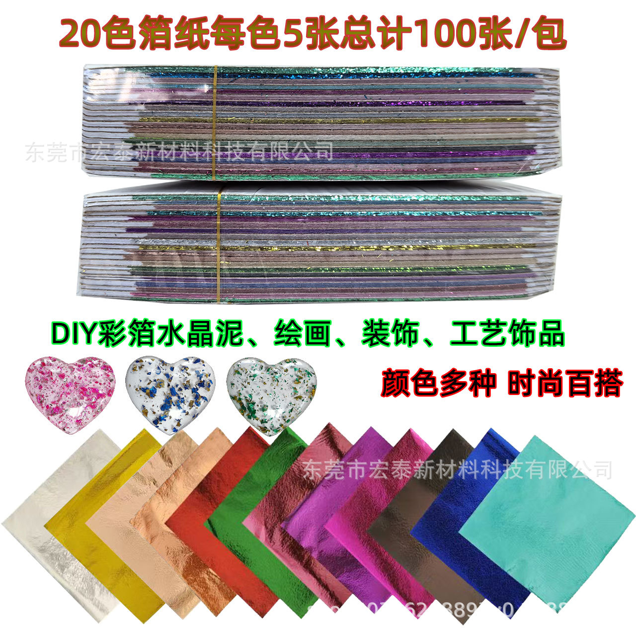 金箔紙 20色 各色5枚 計100枚/パック 模造金箔背景壁装飾工芸品絵画金箔