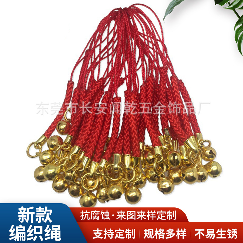 メーカーの卸売りの大きい赤い携帯の縄の金色の鈴のおもちゃは編み縄のナイロンの携帯電話を掛けます。