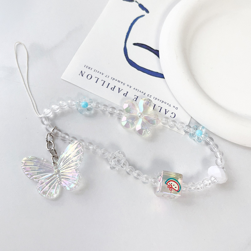 新商品のカラフルな蝶の四角の携帯電話の携帯電話のカバーは縄を掛けて色の花のアクリルのアイデアの通用する携帯電話のペンダントをめっきします。