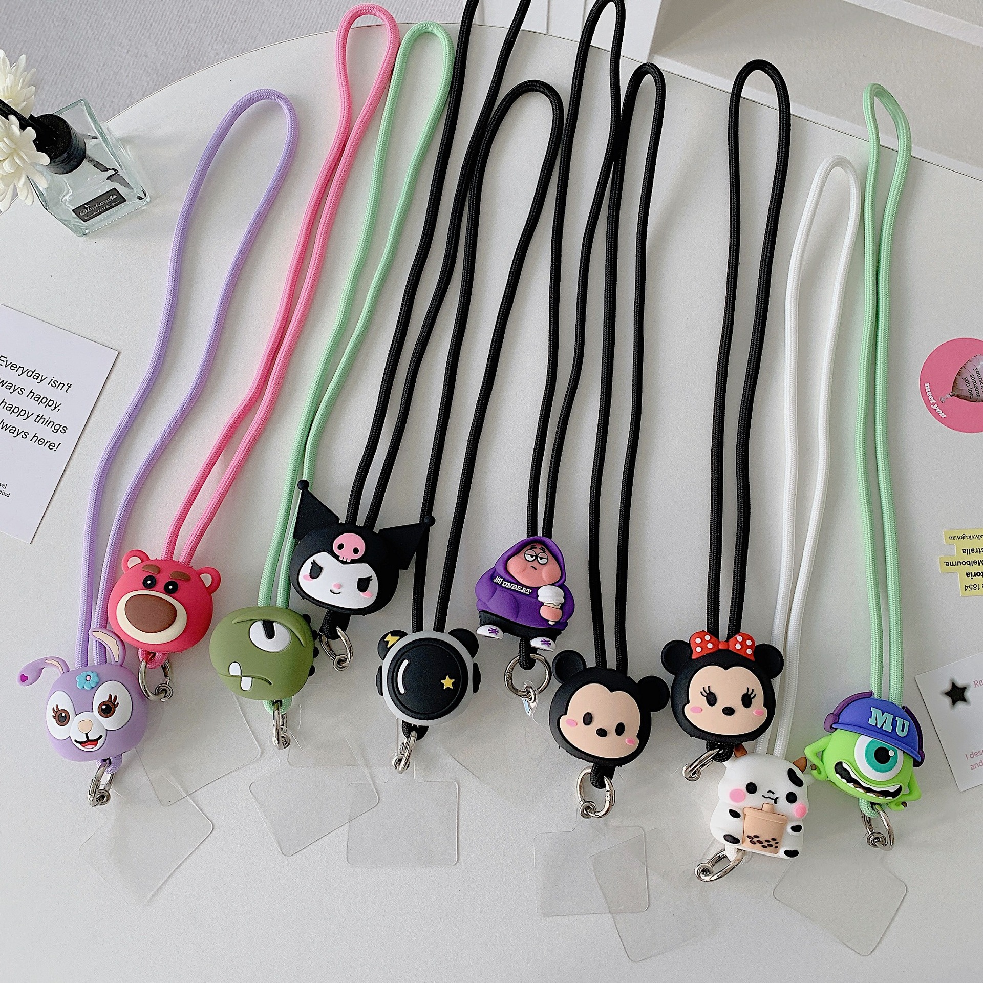 かわいいアニメの人形の携帯電話のケースには、首のチェーンを掛けて汎用的な手のひもの腕のシリコンゴムの丈夫な紛失防止ロープがついています