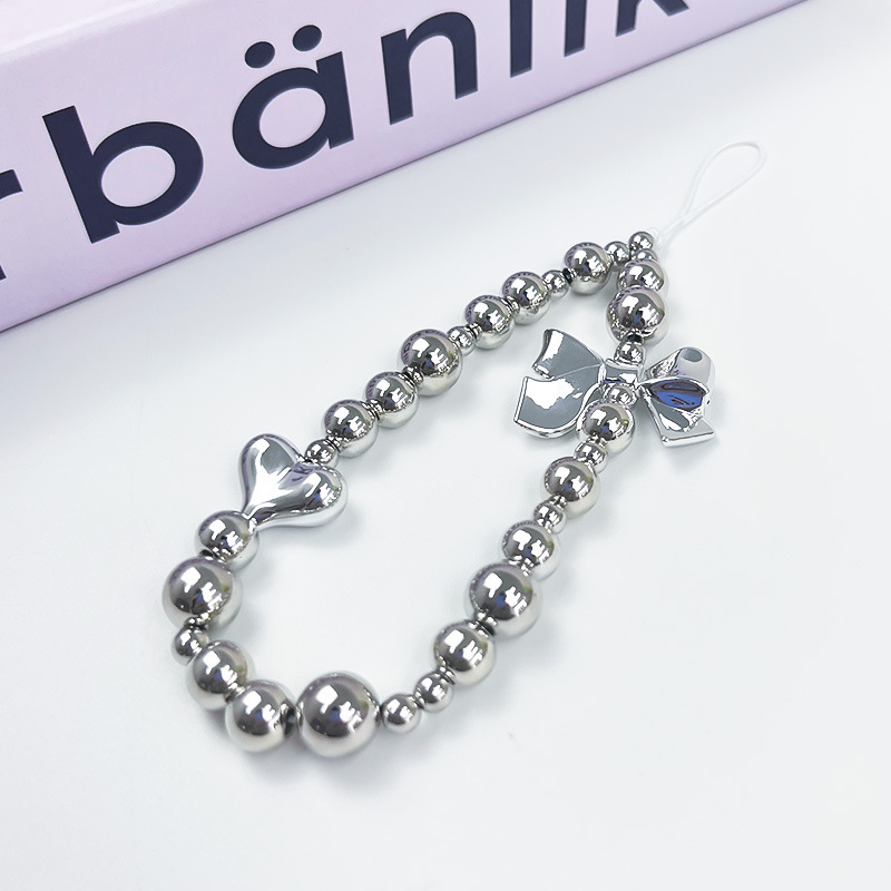 Ins高级感デザインシルバービーズストラップケースチェーンdiy手作り蝶結びバッグチェーン