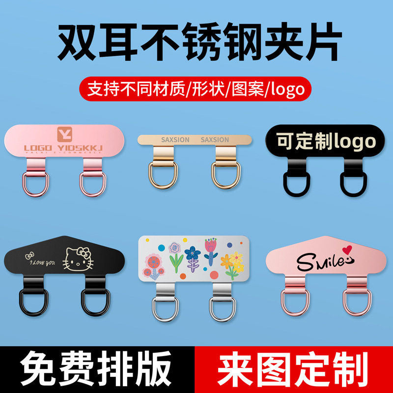 工場でカスタマイズされた携帯電話ストラップクリップ、ステンレススチールクリップ、ロゴ印刷、カスタムガスケット、固定接続ピース、背面ステッカー