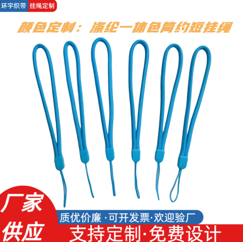 スカイブルー一体型リストストラップ、カスタム無地ショートストラップ、スマホ自撮り棒、デジタル製品落下防止ストラップ