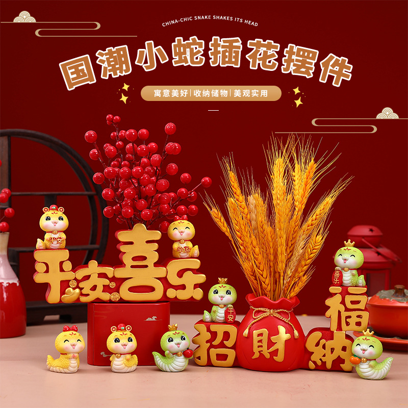 国潮小蛇生け花銭缶置物生肖蛇年筆筒家庭装飾マスコット蛇宝公仔工芸品