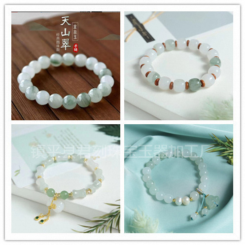 天然天山翠玉ブレスレット新疆金糸玉白玉円珠翡翠浮花手串卸売り生中継ソース