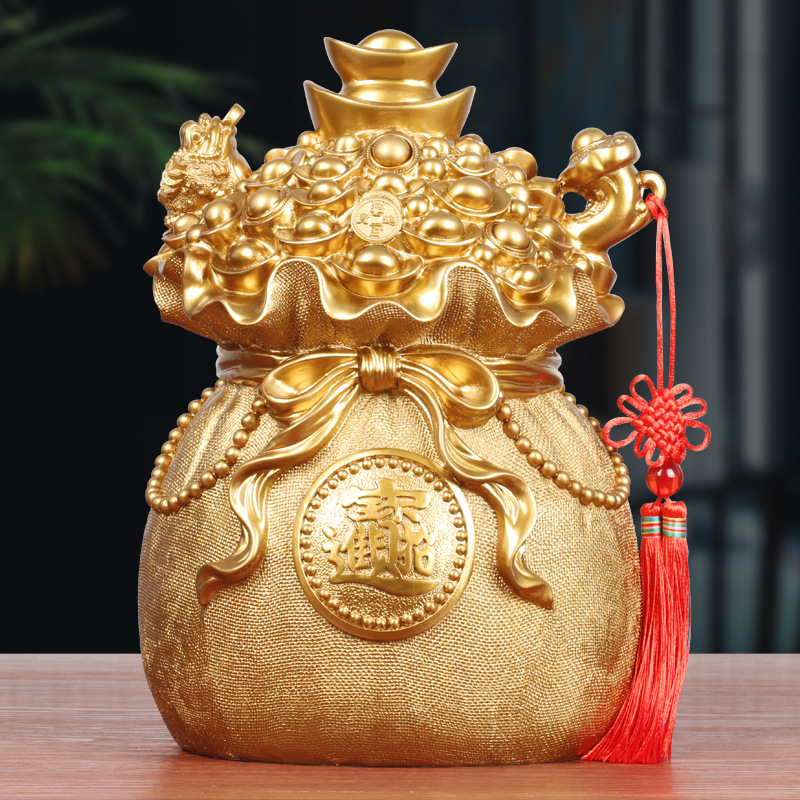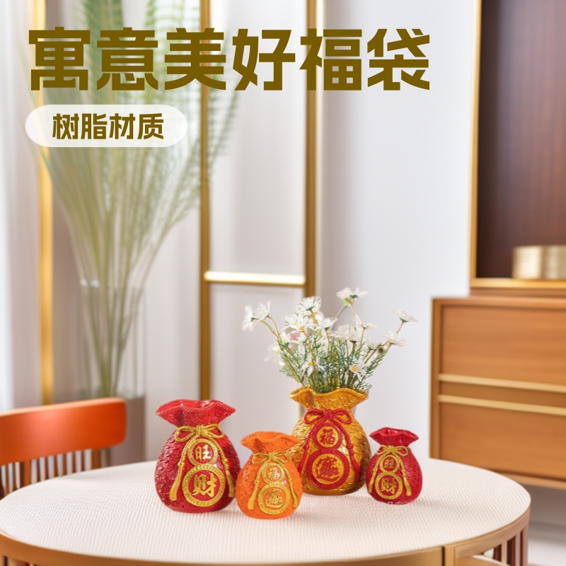 新型ネット紅中国式麦穂福袋花瓶樹脂置物家庭寓意貯金袋客間テレビキャビネット装飾