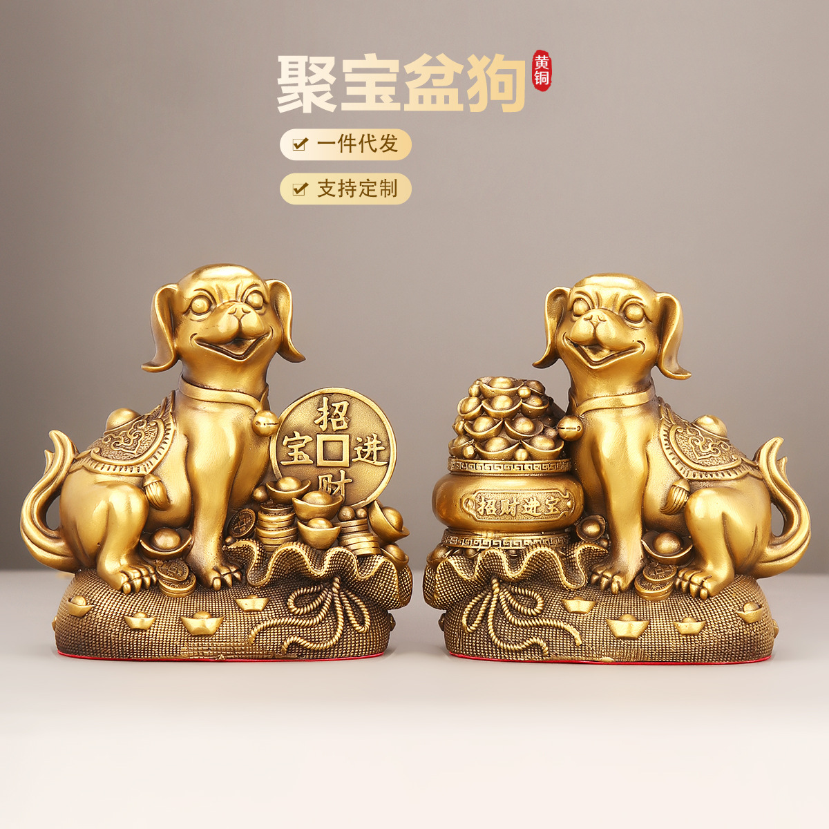 メーカーの卸売りの銅の犬の置物の全銅のお金の袋の犬の宝の鉢の犬の肖の犬の財産を守る犬の開業の引っ越しの工芸品