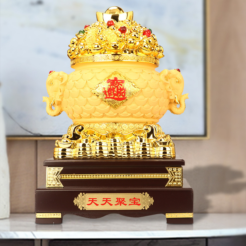 黄氷玉貼り金聚宝盆樹脂工芸品置物開業結婚祝いプレゼント樹脂置物卸売り