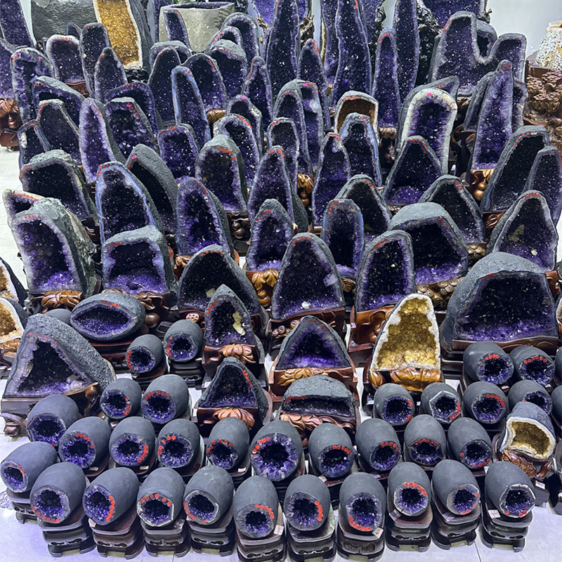 卸売りブラジル天然紫晶洞置物ウルグアイ銭袋聚宝盆消磁開業開店プレゼント