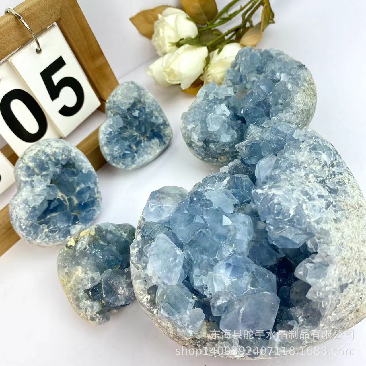 Celestine天然天青石原石藍晶洞砕石ハート型卵形銭袋鉱標置物卸売り