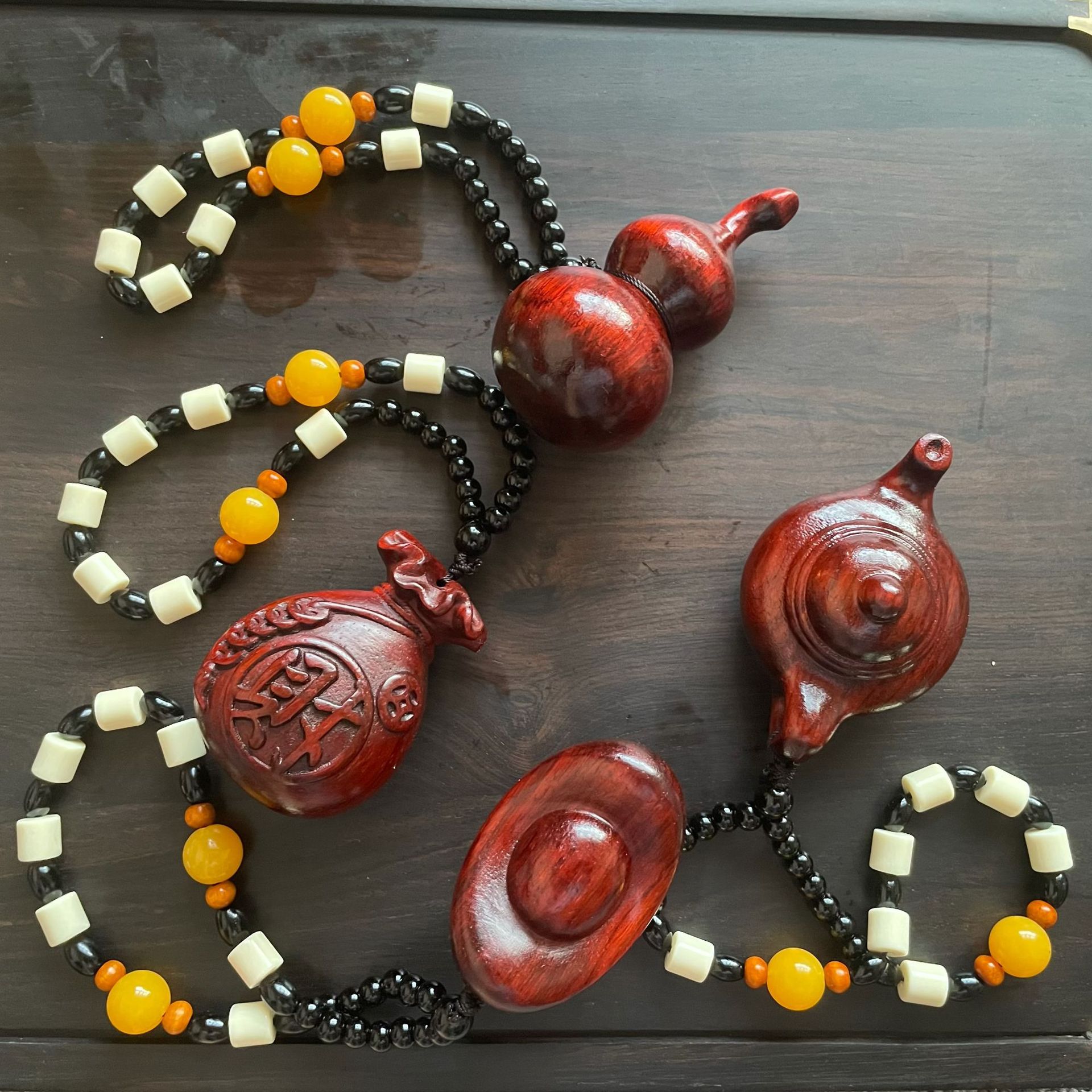 卸売りの紫檀の木のヒョウタンの取っ手の部品の携帯文は手の串の手作りのペンダントを遊んで檀の木の工芸品のペンダントを飾ります。