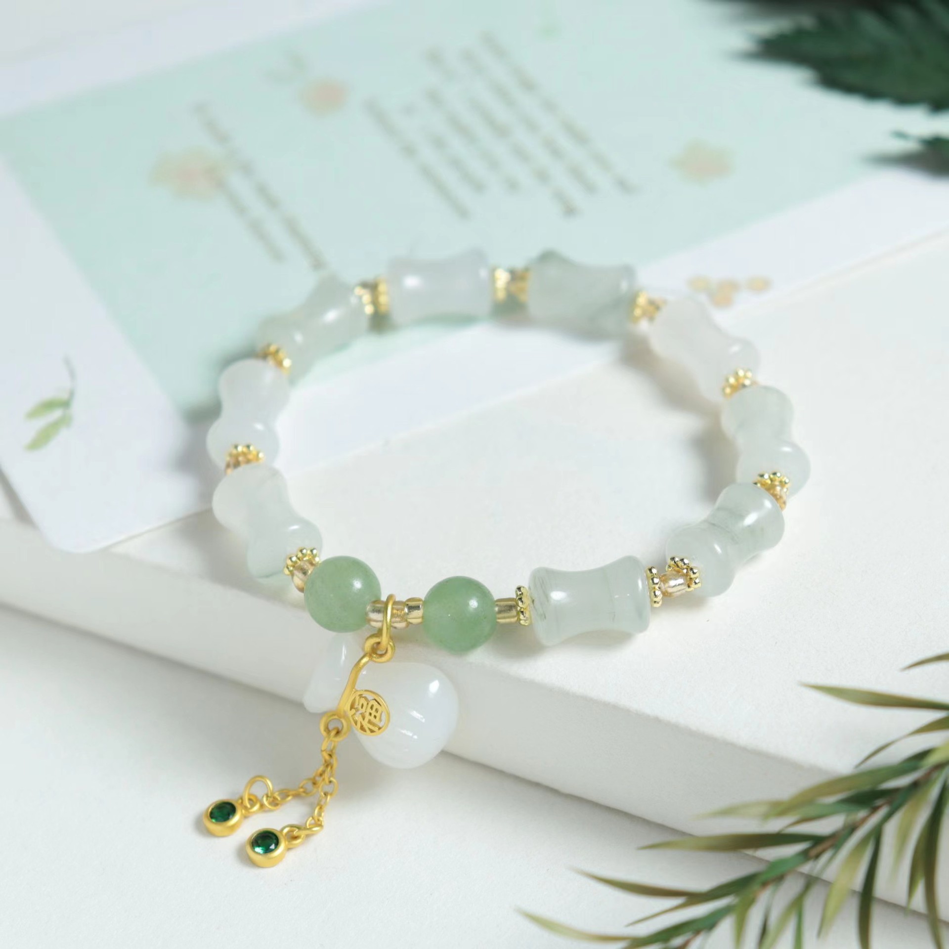 新疆金糸玉天山翠ブレスレットの女性の花の翡翠色の竹の節の単輪の玉の手の串