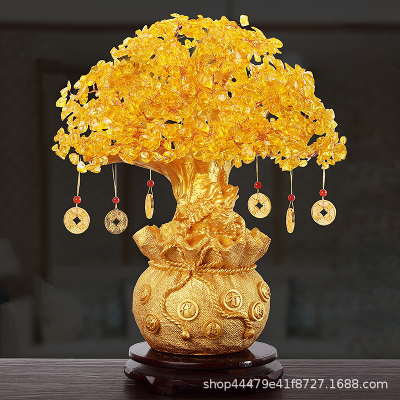 黄水晶の金持ちの木の金のなる木の置物の金を募集します。