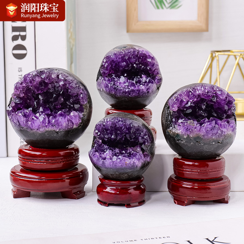 天然紫水晶洞はブラジルの恐竜の卵を並べています。